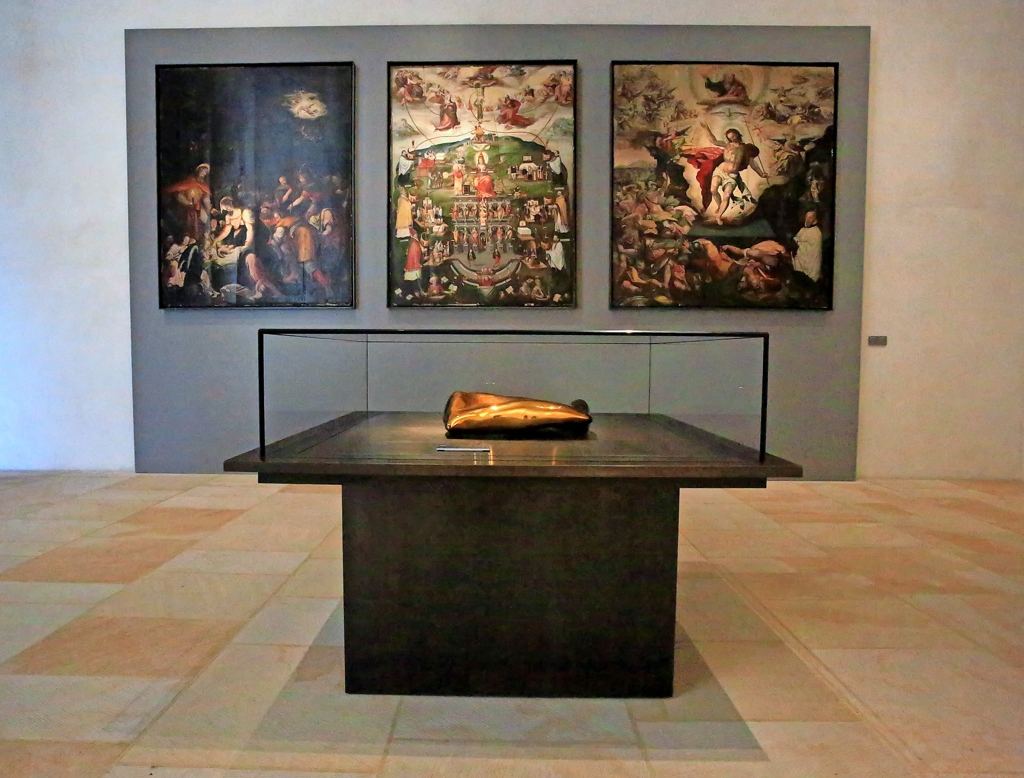 Geschichte und Gegenwart. In unmittelbarer Nachbarschaft zur Domkirche als lebendigem Kultort und angebunden an den mittelalterlichen Kreuzgang mit dem 1000 jährigen Rosenstock verbinden sich im neuen Dommuseum Geschichte und Gegenwart in einzigartiger Weise. Die Dauerausstellung zeigt in hochrangigen Exponaten wichtige Themenkomplexe aus Geschichte und Kultur von Dom, Stadt und Bistum. Im Zentrum stehen die zum Welterbe gehörenden Werke mittelalterlicher Kunst. Dazu zählen vor allem die Objekte, die mit der Erinnerung an die Hildesheimer Bischöfe Bernward und Godehard verbunden sind. Außerdem zeichnet sich die Sammlung durch einen hervorragenden Bestand mittelalterlicher Bronzegüsse aus. Arbeiten zeitgenössischer Künstler, darunter Arnulf Rainer, Gerd Winner und Emil Cimiotti stehen den historischen Kunstwerken in einem spannungsvollen Dialog gegenüber. Leere und Form. Mit den Künstlergruppen Zero und Gutai tritt zu den sehr konkreten Arbeiten historischer christlicher Kunst im Dommuseum etwas ganz Anderes hinzu, das dem Sammlungsbestand zunächst entgegengesetzt scheint. „Zero“ bedeutet „Null“ gleich „Nichts“. Doch es geht nicht um die verzweifelte Kapitulation, um die Abwesenheit von allem und dem Verlust jeder Sinnhaftigkeit, nicht um eine nihilistische Weltsicht. Die Null ist eine neutrale Zahl, die weder positiv noch negativ ist, die Mitte und Symmetrie bedeutet und damit eine erfüllte Leere ermöglicht. Auch die christliche Tradition kennt das „Sich-Leermachen“ als Voraussetzung für die Gottesbegegnung. Den zeitgenössischen Arbeiten gegenübergestellt, rücken auch die historischen Kunstwerke in den Kontext der menschlichen Suche nach dem, was unsere Leere wirklich füllen kann.