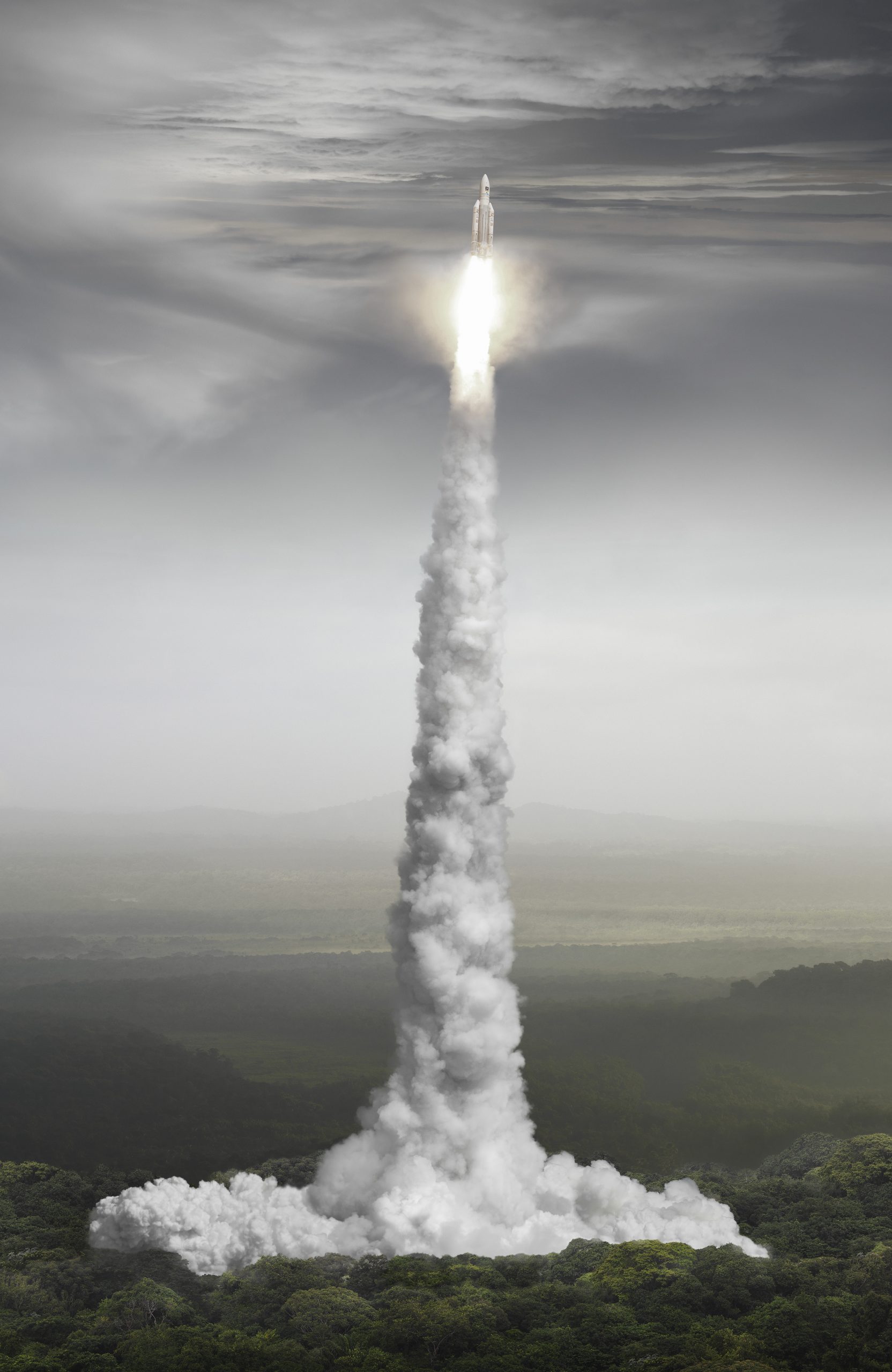 Michael Najjar, orbital ascent (2016), 2016, Hybride Fotografie, Archiv-Pigmentdruck, Aludibond, Diasec, maßgefertigter Aluminium-Rahmen, 280 x 182 cm, Sammlung Wemhöner, Herford/Berlin, © Michael Najjar, Courtesy der Künstler