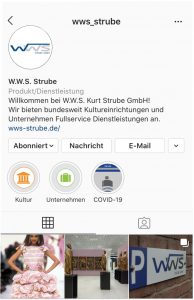 Es ist so weit! Das WWS Strube Team ist nun auch auf der Plattform Instagram vertreten! Hier findest du alles Wichtige zur Firma WWS Strube, darunter unsere Firmenphilosophie, unsere Dienstleistungen für Unternehmen und Kultureinrichtungen, Ausstellungstipps und eine Übersicht über viele verschiedene Kultureinrichtungen. Das Ganze dabei immer in übersichtlicher grafischer Darstellung verpackt.